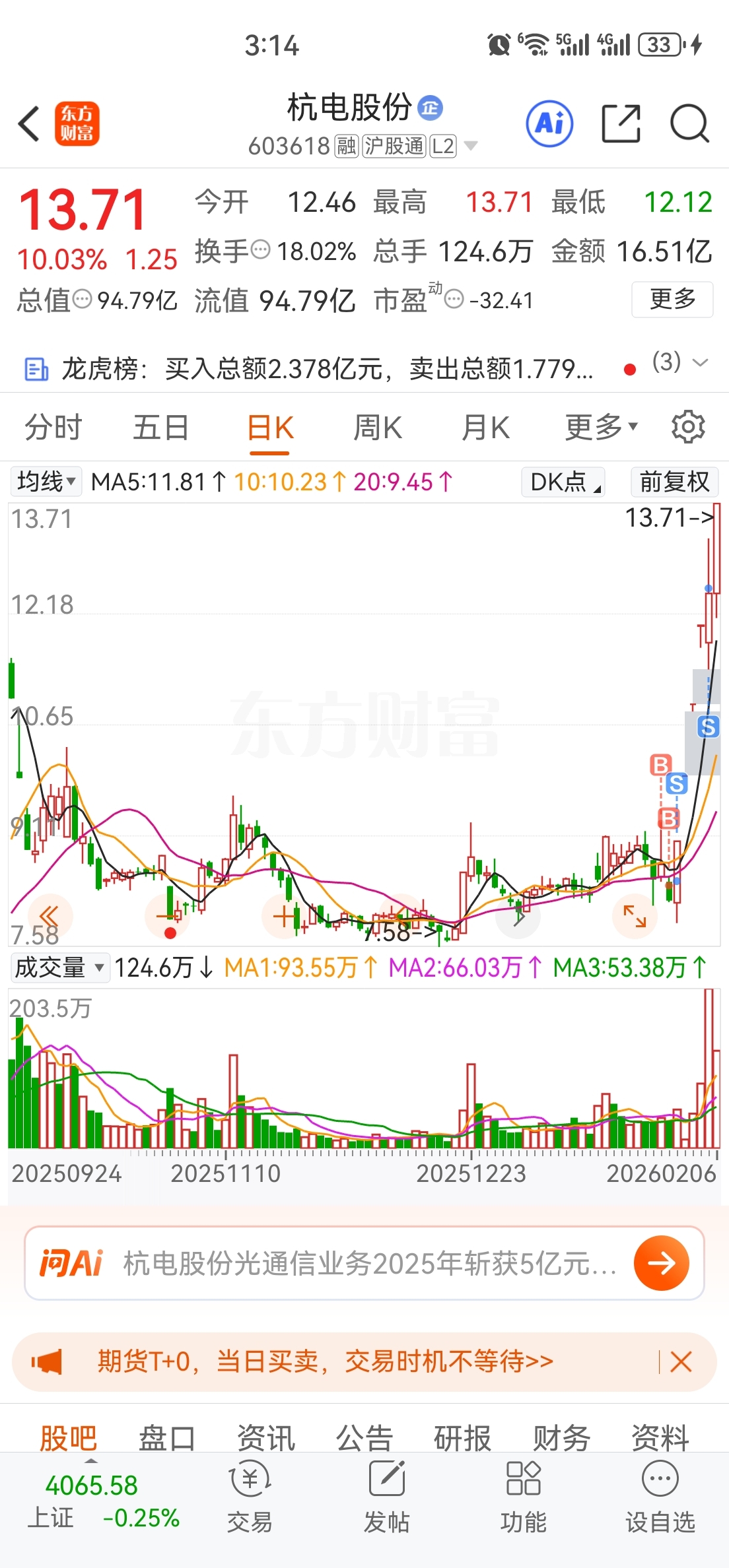 $杭电股份(SH603618)$ 悔不当初,上周五卖了半仓,周四果断走了,留下的发财