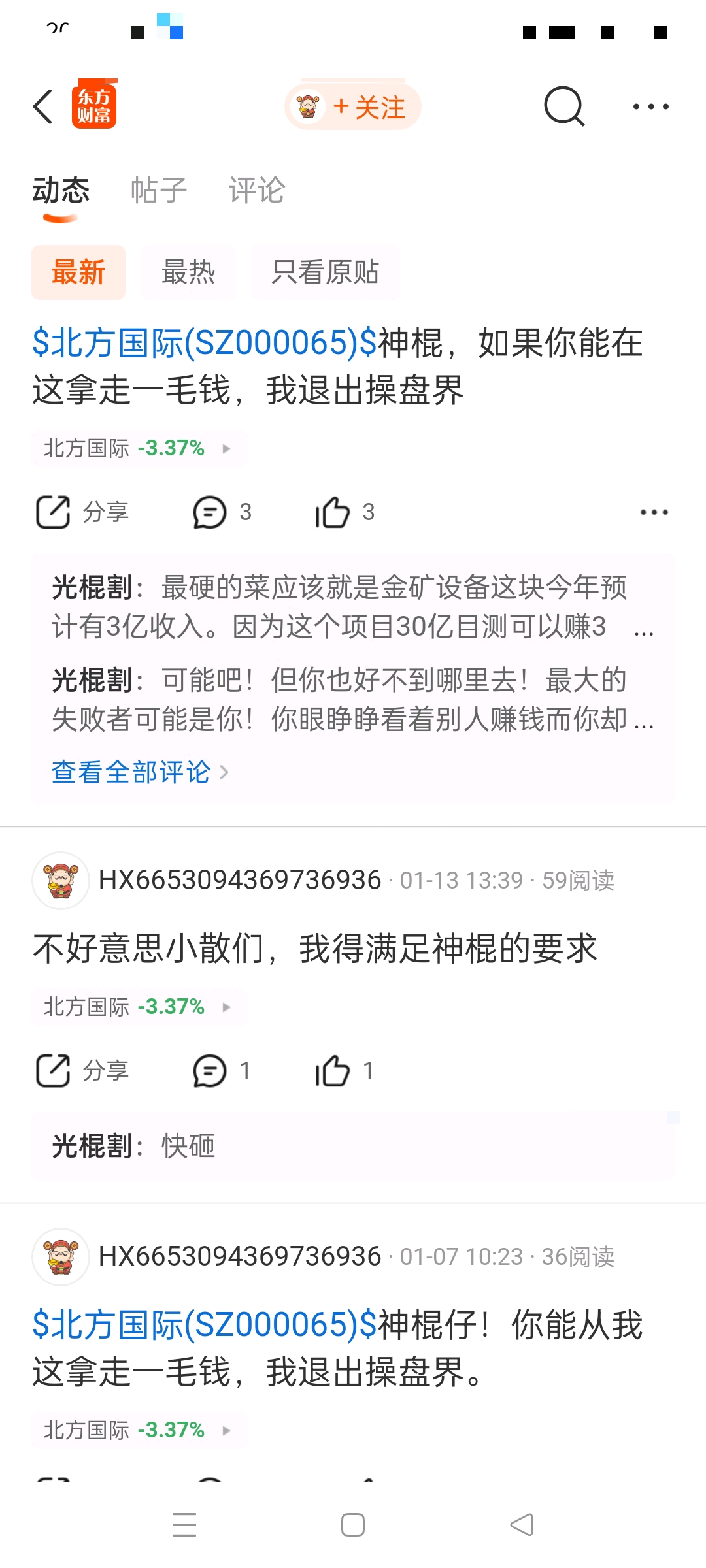$北方国际(SZ000065)$ 我不知道你是谁!说真的感觉你确实有点本事!会不会真是做盘手?因为你铁子里只有我和北方国际!并且多次弹幕也看到你针对我了!这至少可以说明我棍子割确实有一定威慑力了!这也难怪,毕竟我棍子割是北方国际唯一的大为!事实是你每次说不涨结果就涨了!这是人干的事么?现在问题来了:1.我棍子割北方国际微亏!但最近我仇码多了至少15手!这个应该不需要辩驳。2.你真那么厉害为什么你收益也没超过棍子割?问问自己什么原因可以吧?当然你应该也不敢跟我晒仓!因为全求都知道你晒不过我!我也不想晒了!因为自已经晒过了!炊我也会:你作为做盘手收益都晒不过韭菜你好意思说上市公司吗?连一个退市股都不如的背景?量化了这么多年你们赶走了几个韭菜?不但没有赶走韭菜反倒增加了至少10个韭菜!你想清棍子菌团!现在棍子菌团就想清你们!明确告诉你我们棍子菌团只抄底!希望继续给机会!我再说一遍:江淮汽车通葡股份金正大博天正平股份棍哥至少都赚三倍!这样的成绩你有本事拿出来!跟我斗你会丝的很难看!以后不要说大话了拐耳子!霸吧先关注你。以后会打你连比较方便!验证:全网韭菜均可验证。$易华录(SZ300212)$ $江淮汽车(SH600418)$ #炒股日记# #强势机会#