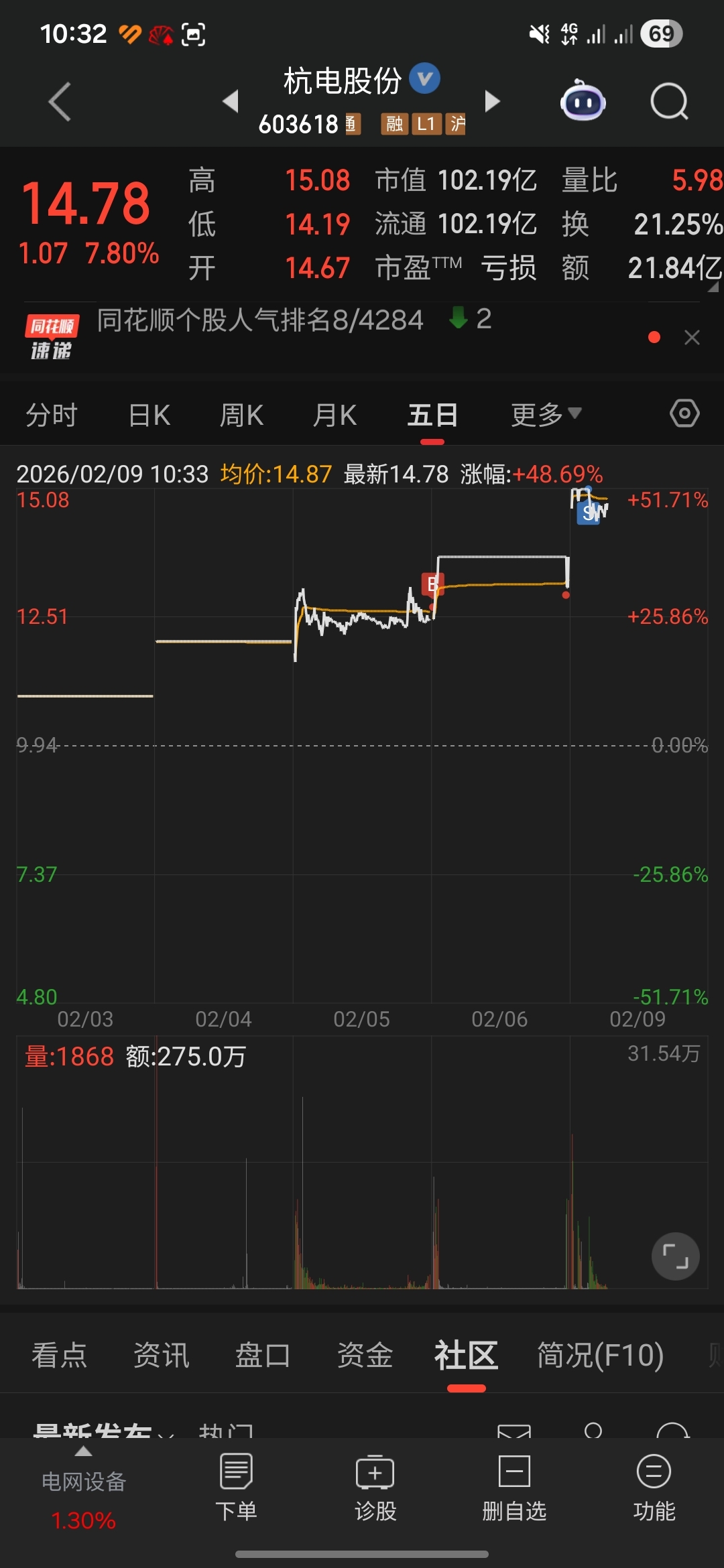 $杭电股份(SH603618)$ 把周五尾盘的投机筹码t了,后面还要炸板,但是量能没有放多大。看好
