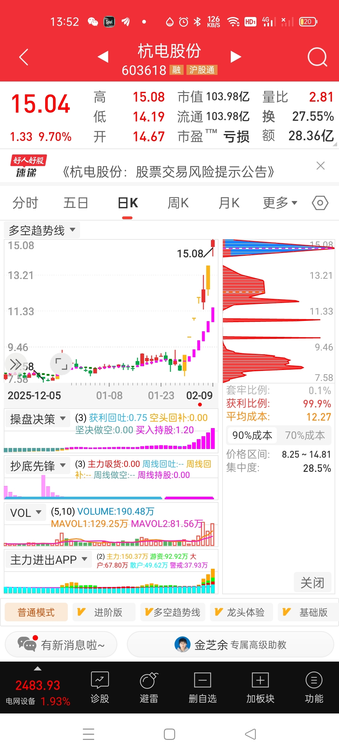$杭电股份(SH603618)$ 高位换庄继续持有