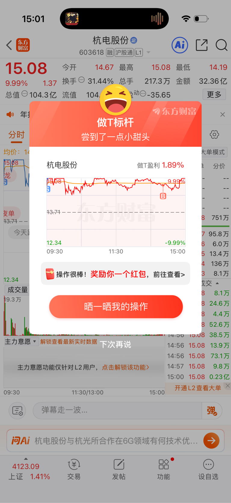$杭电股份(SH603618)$ 吃肉了哈哈哈