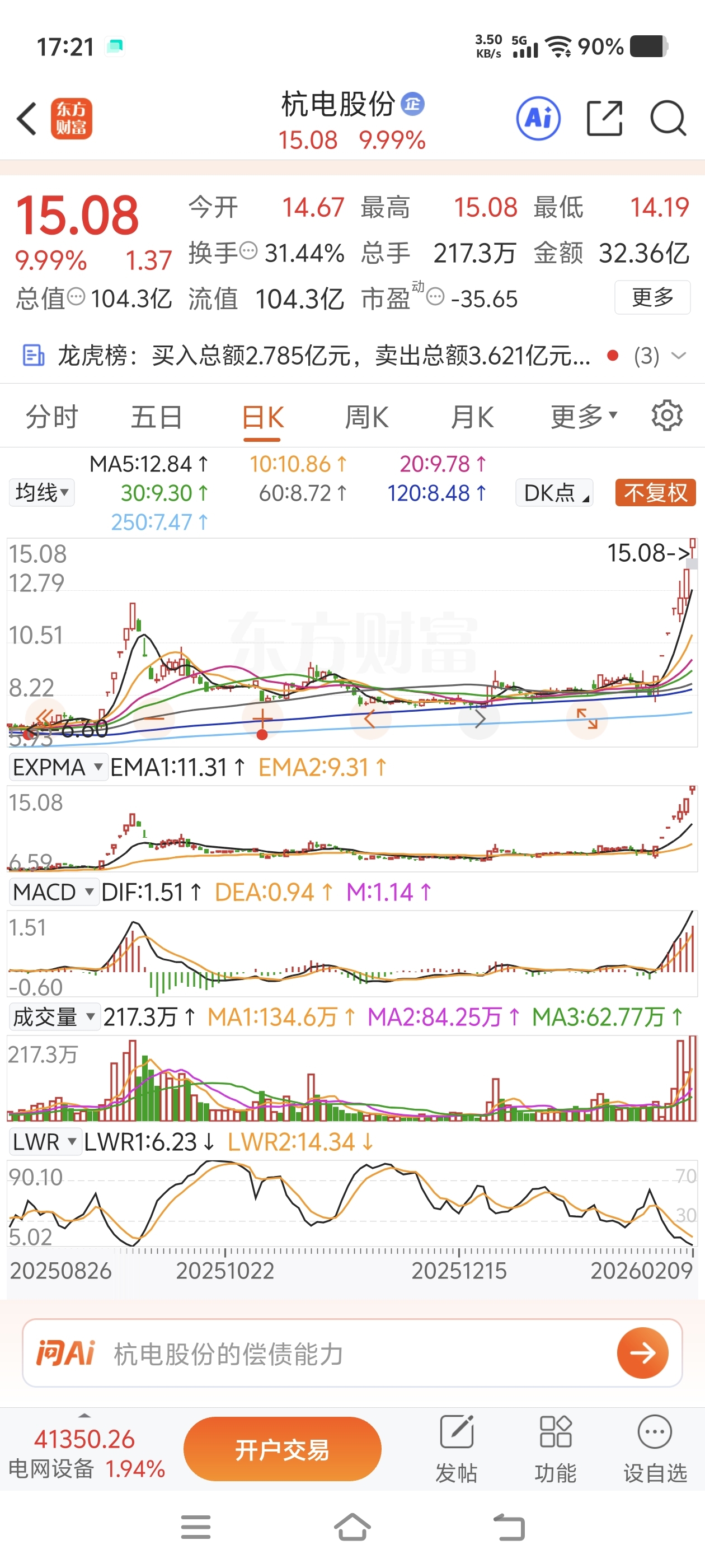 $杭电股份(SH603618)$ 杭电股份好样的!