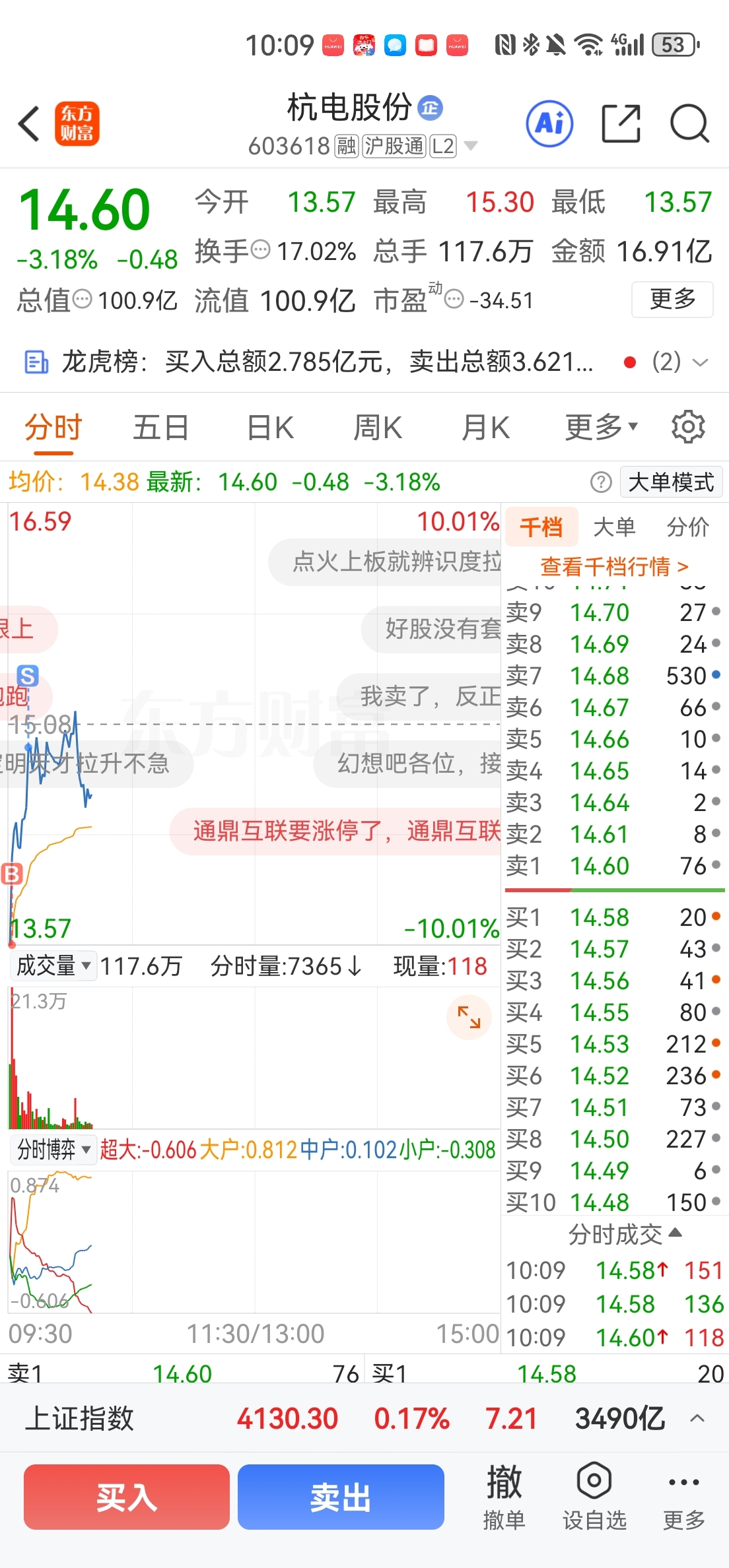 $杭电股份(SH603618)$ 行了,今天任务已经完成,昨天打板进来的,后面就是择时做t或者离场了