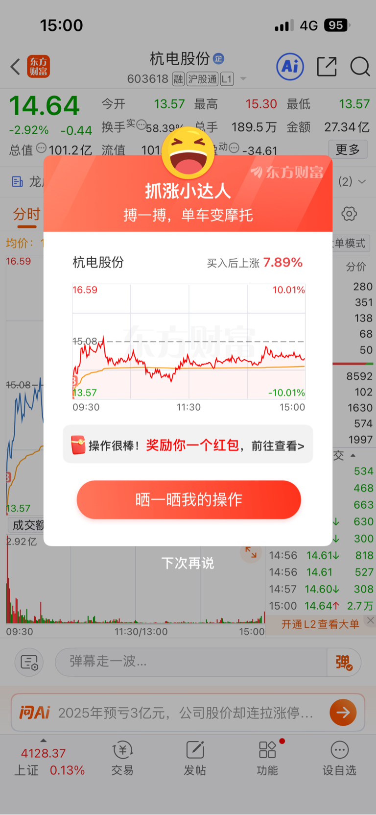 $杭电股份(SH603618)$ 胆小只能吃泥吃土