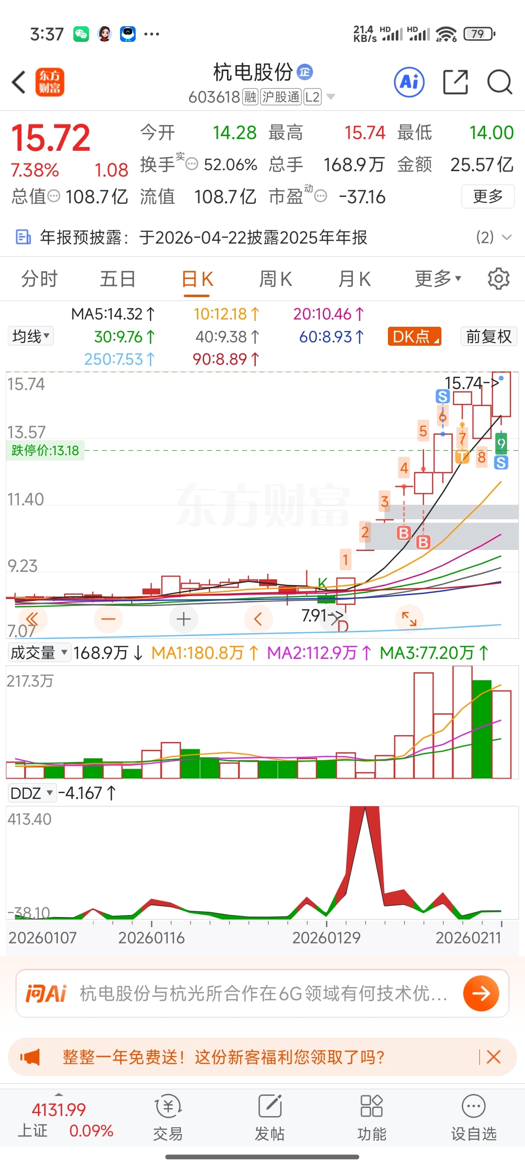 $杭电股份(SH603618)$ 感谢主力