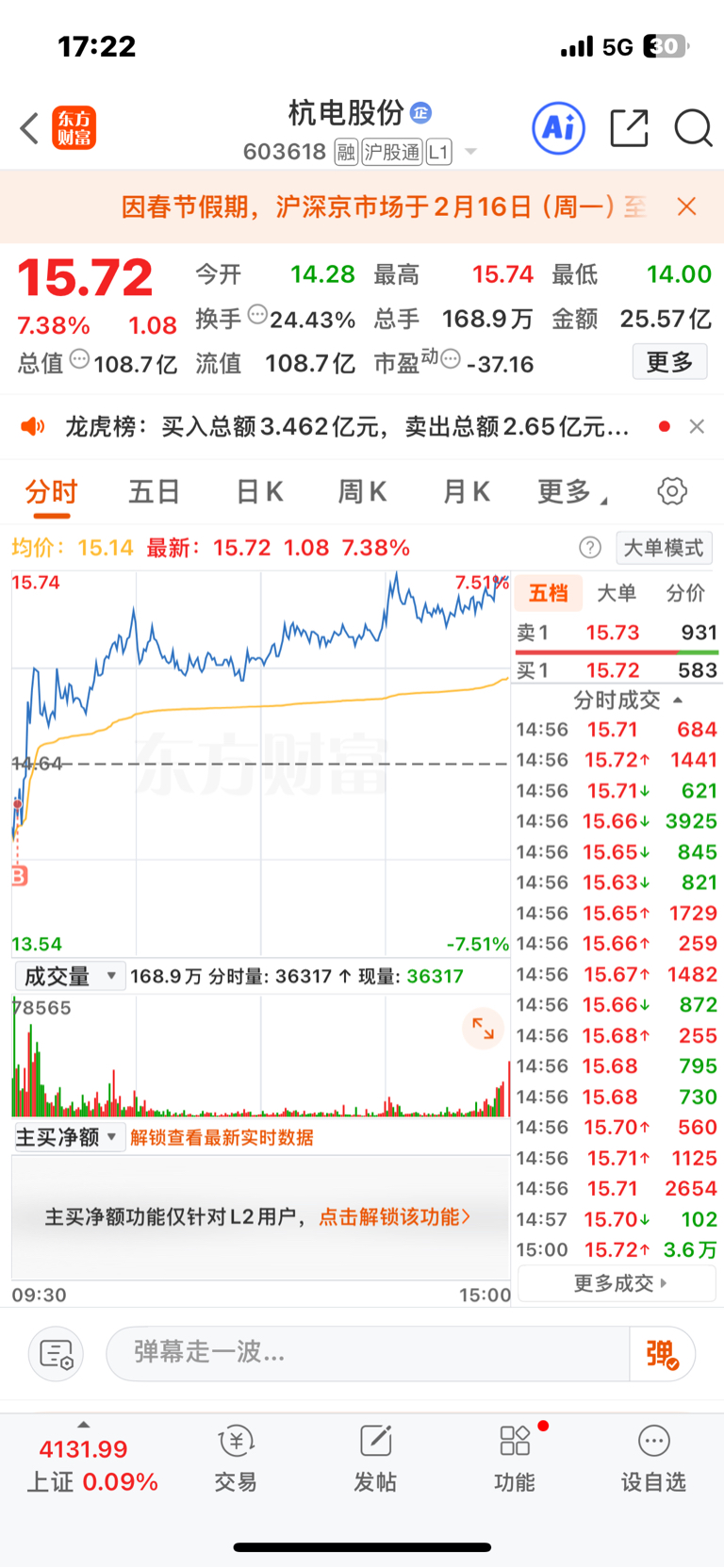 $杭电股份(SH603618)$ 早盘拿个先手,