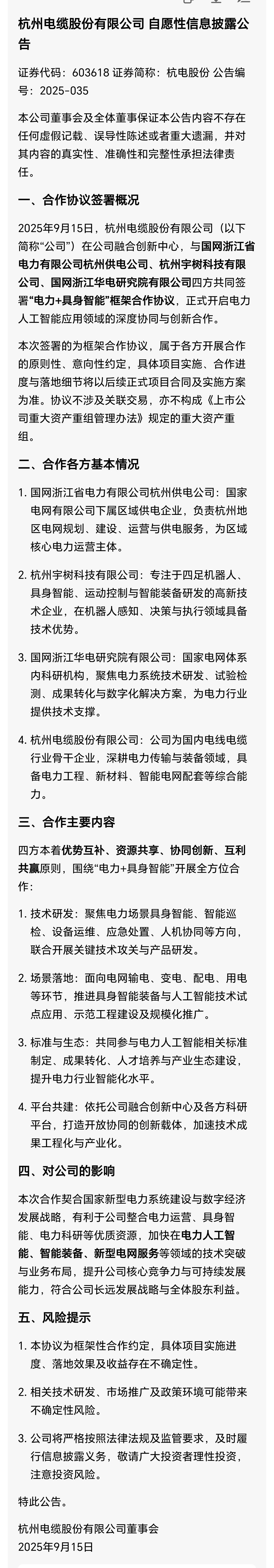 1、杭电股份与宇树科技的“电力+具身智能”合作(百度/豆包/DeepSeek都可