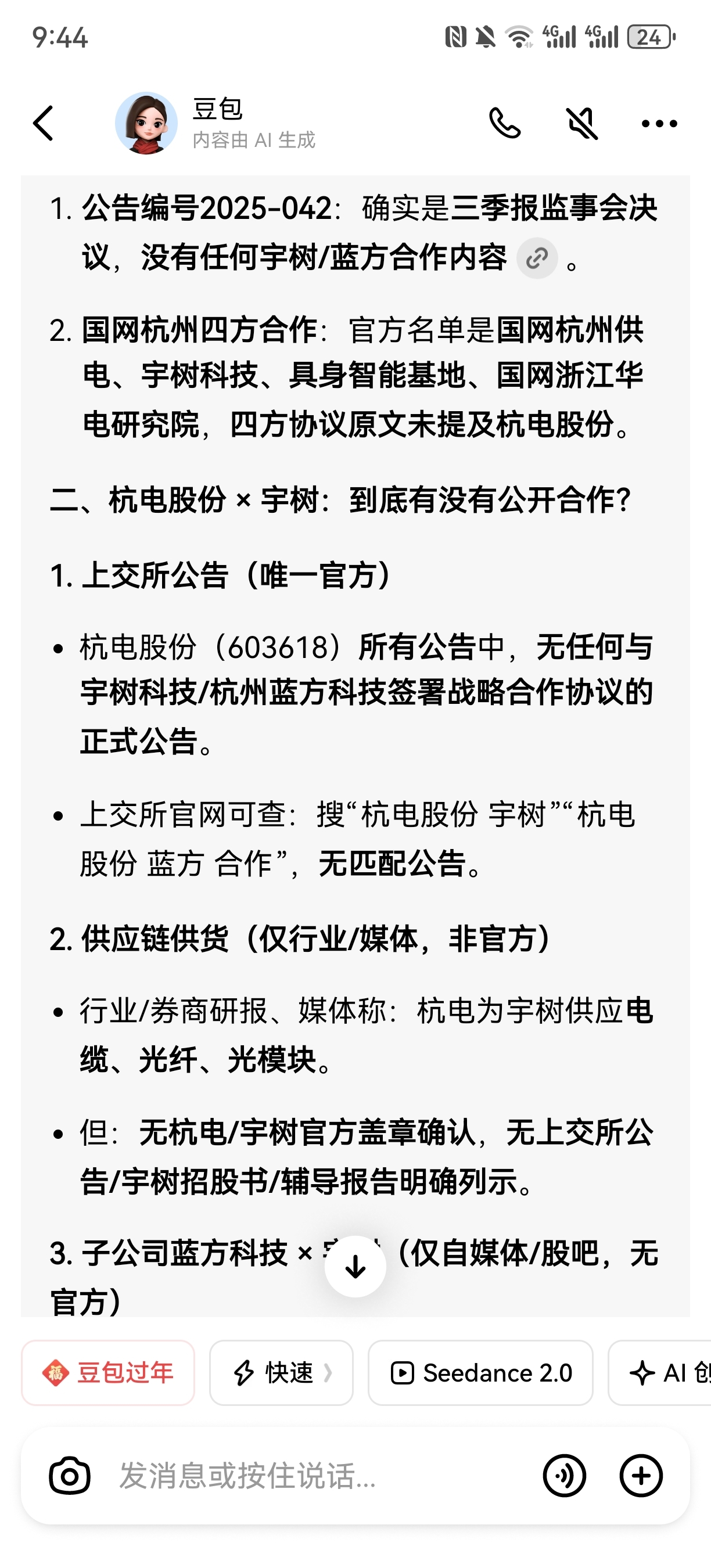 $杭电股份(SH603618)$ 这波是光纤龙头,年后光纤有修复预期,他不会差。现在跳机器人那不是自找麻烦吗?他就算是宇树供应商,就凭那几根电缆那也只是机器人板块里的杂毛,更何况还没有。年后机器人高开低走,这种杂毛一字跌停。