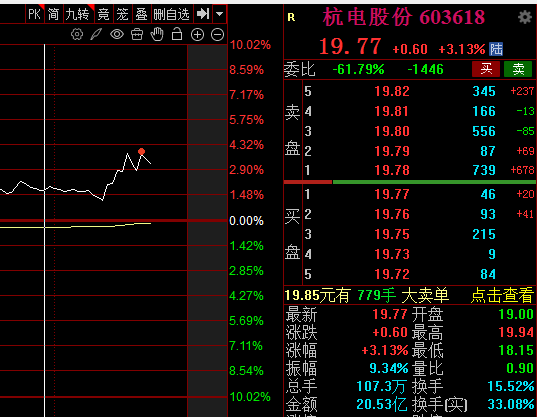 杭电股份 尾盘小追再次参与了 【3.9号】