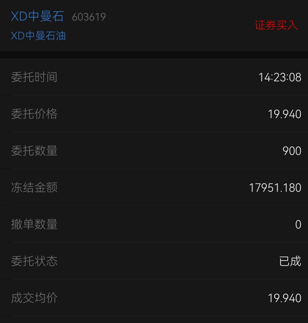 $XD中曼石(SH603619)$ 周一让吃点肉就跑