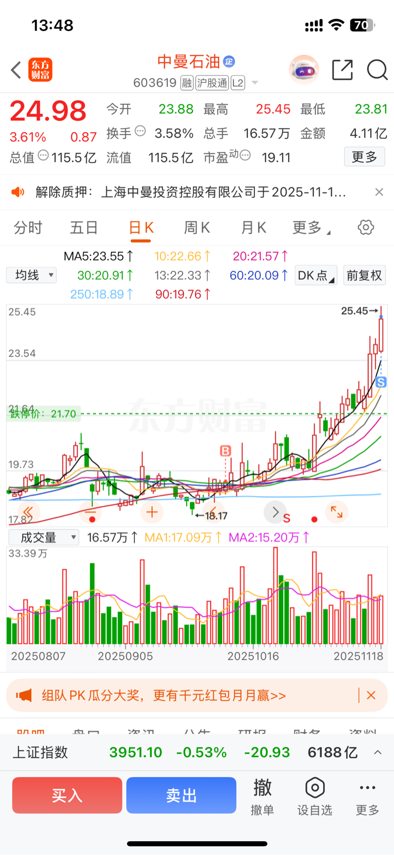 $中曼石油(SH603619)$ 总感觉吧,这次要卖飞了,接回去又害怕