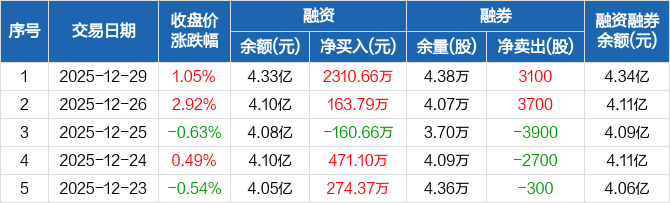 中曼石油:融资净买入2310.66万元,融资余额4.33亿元(12-29)