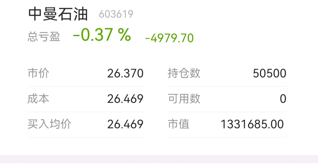 $中曼石油(SH603619)$ 今天26.46买了5000股,按错买了50000