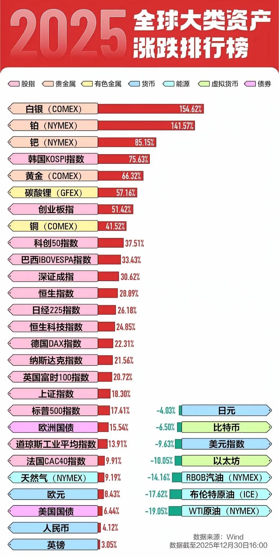 从这张图,你能看到2026年的投资机会在哪里吗?如题,2025年大类资产涨幅榜,