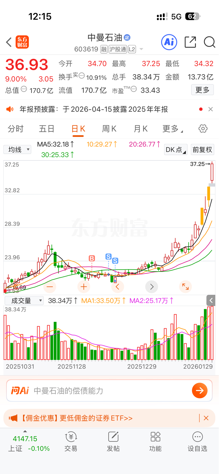 $中曼石油(SH603619)$ 拍断大腿