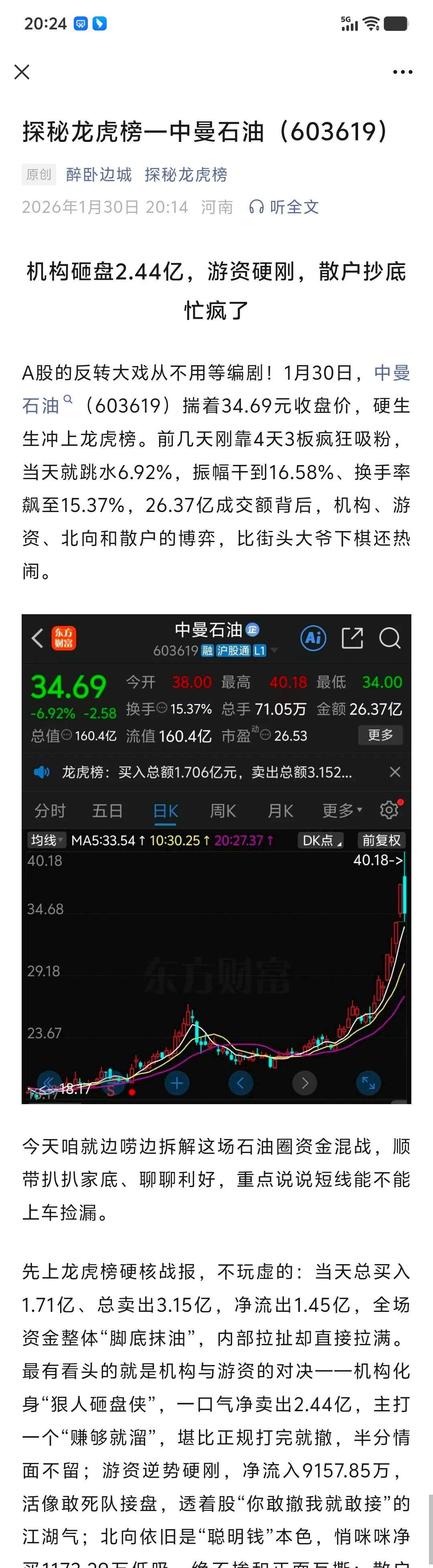 $中曼石油(SH603619)$