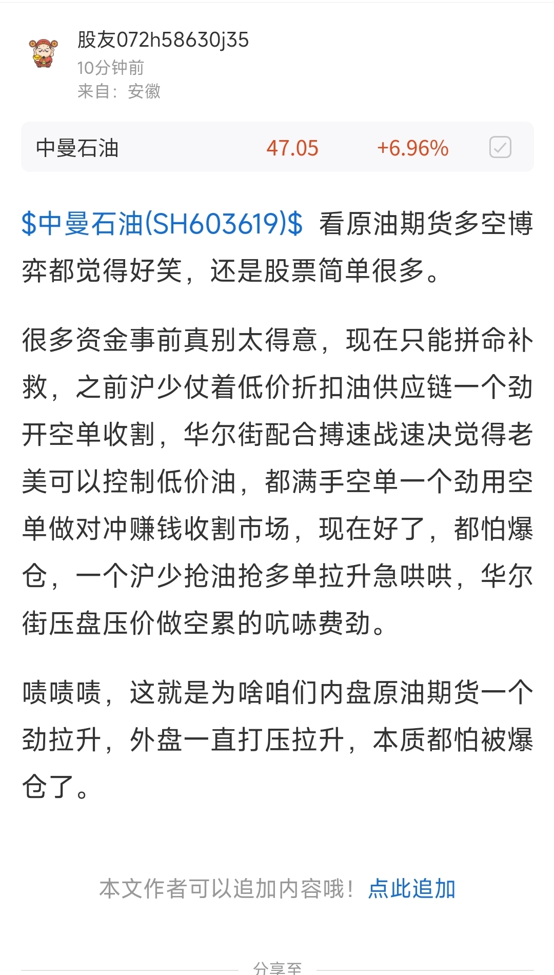 $中曼石油(SH603619)$ 特有意思