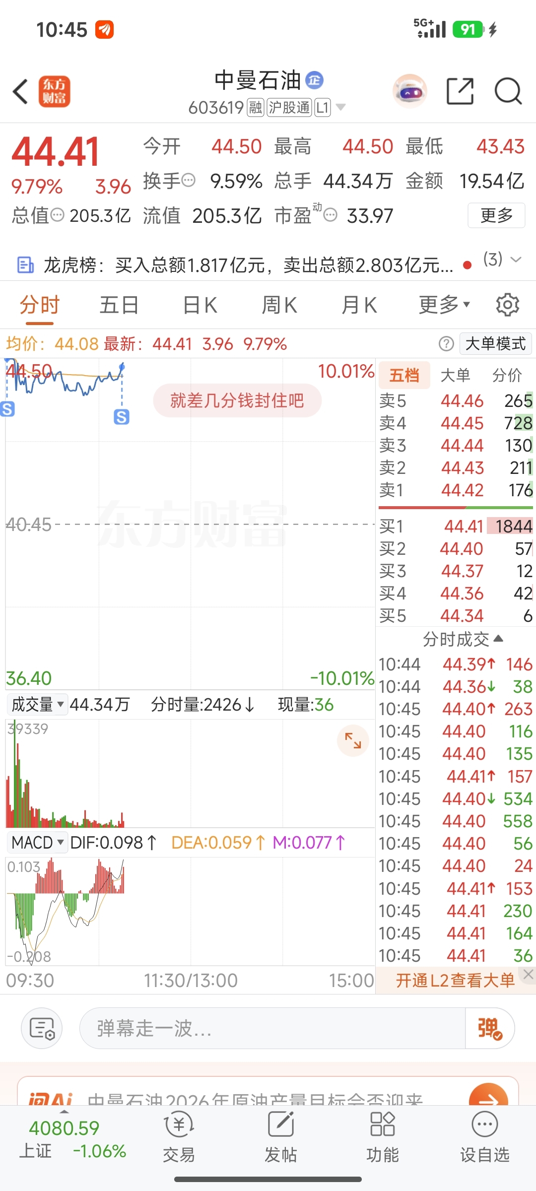 $中曼石油(SH603619)$ 开盘涨停出了,最后的刚也出了