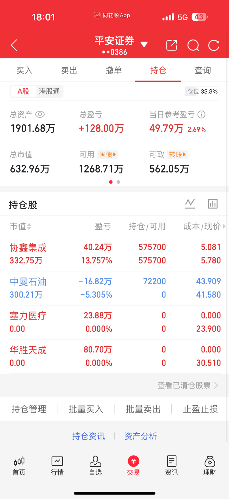 卖去:$华胜天成(SH600410)$ 塞力医疗,选择落袋为安,边做边看吧!