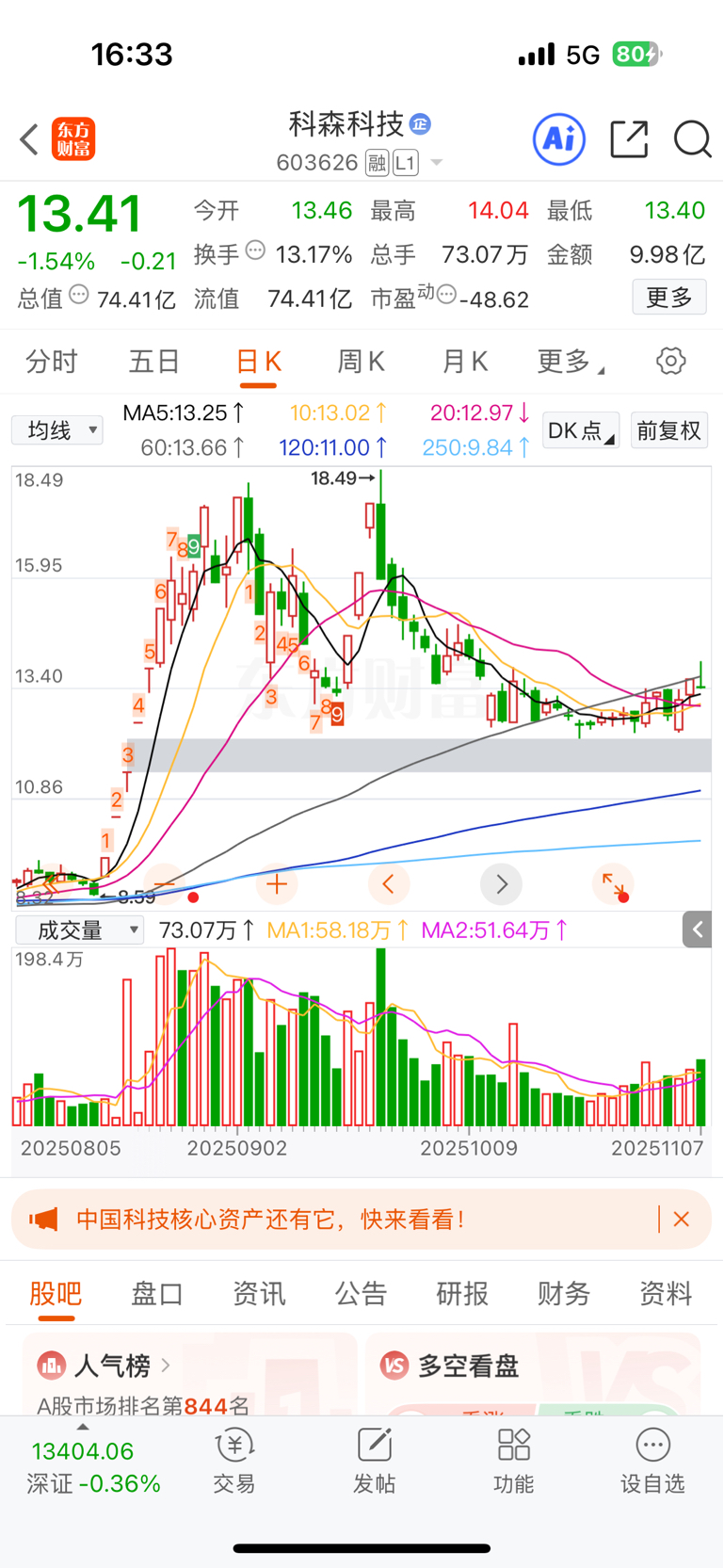 $科森科技(SH603626)$ 是我的错觉吗?我一直在想,这个科森颈线能不能撑住