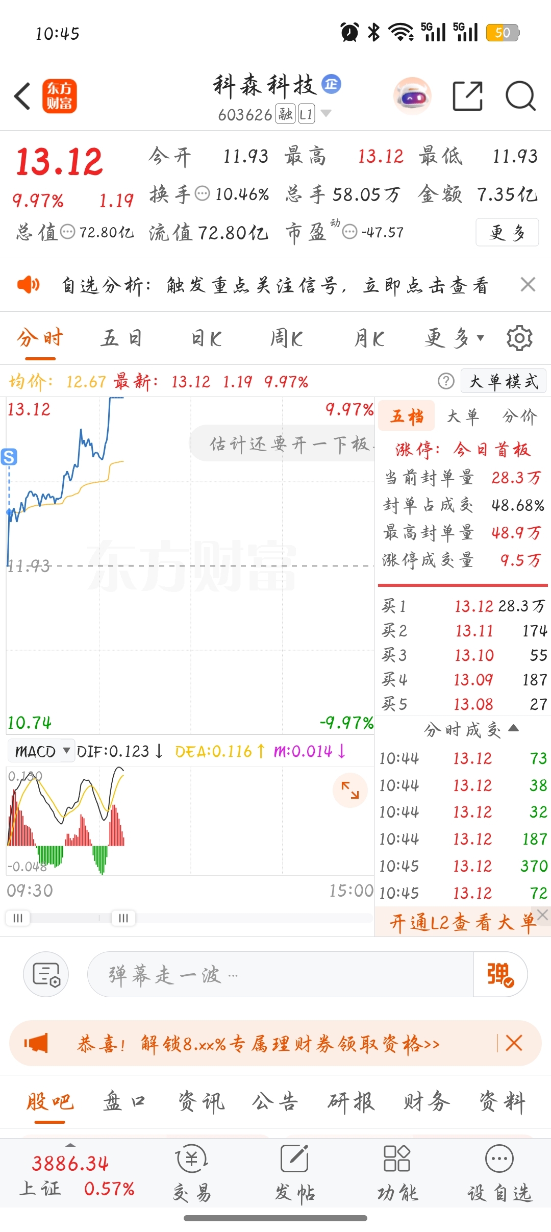 $科森科技(SH603626)$ 拿了一个月,死在黎明前