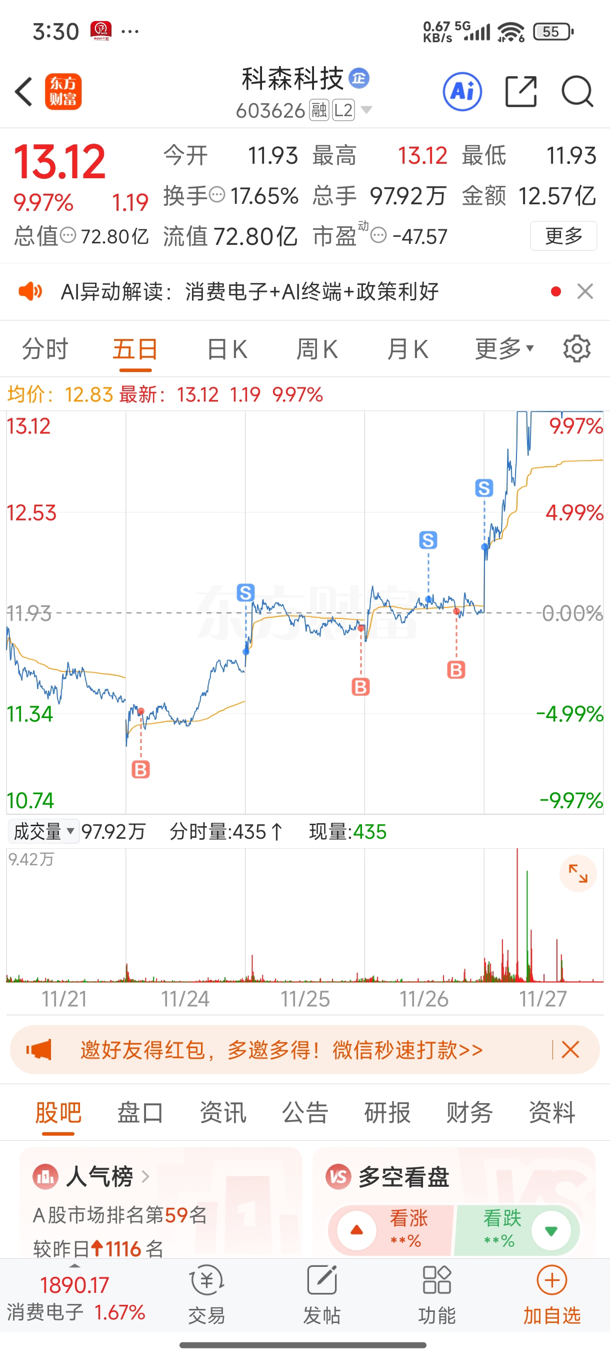 $科森科技(SH603626)$ 唉,这只能怕自己呀