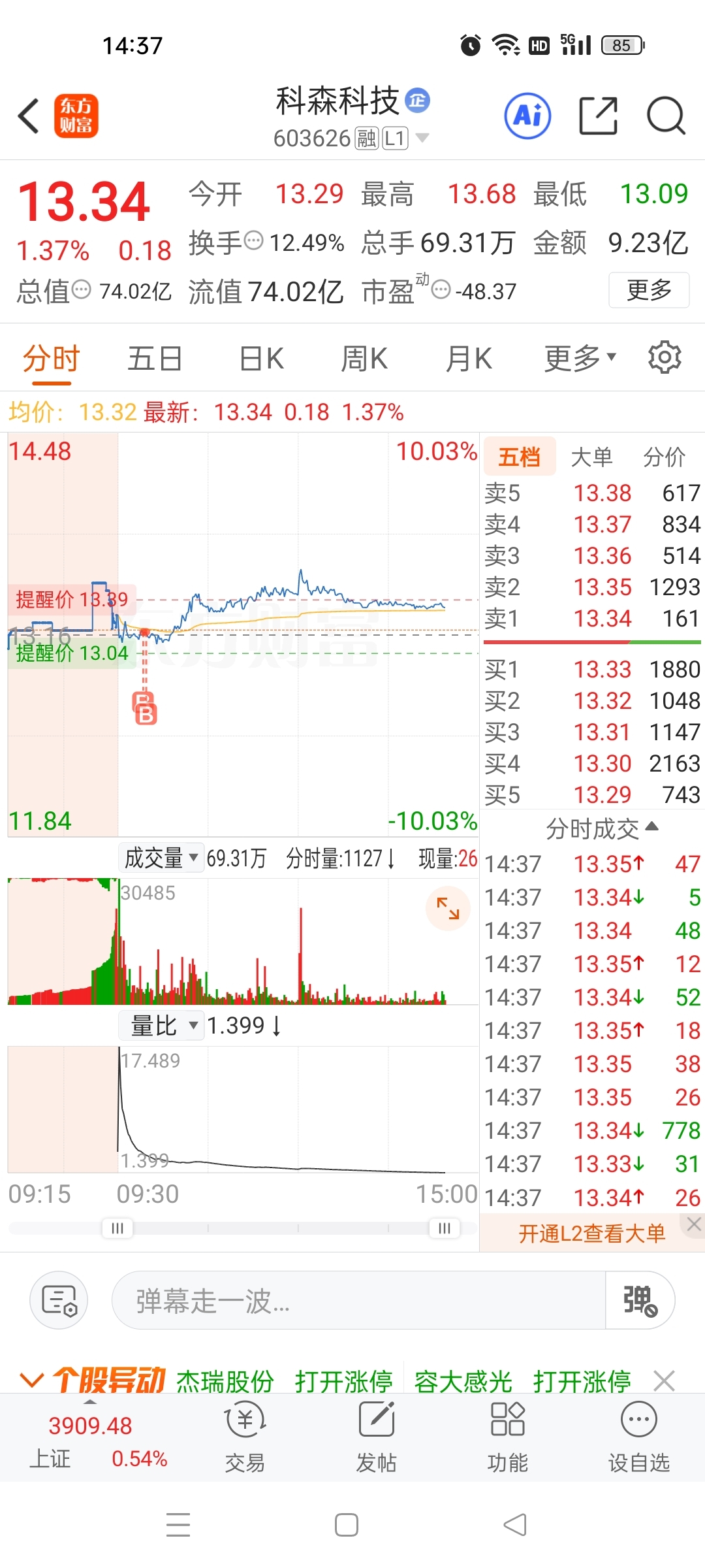 $科森科技(SH603626)$ 主力控盘真很,支撑点差几分钱不破,抛压就是不自己攻让别人去打抛压