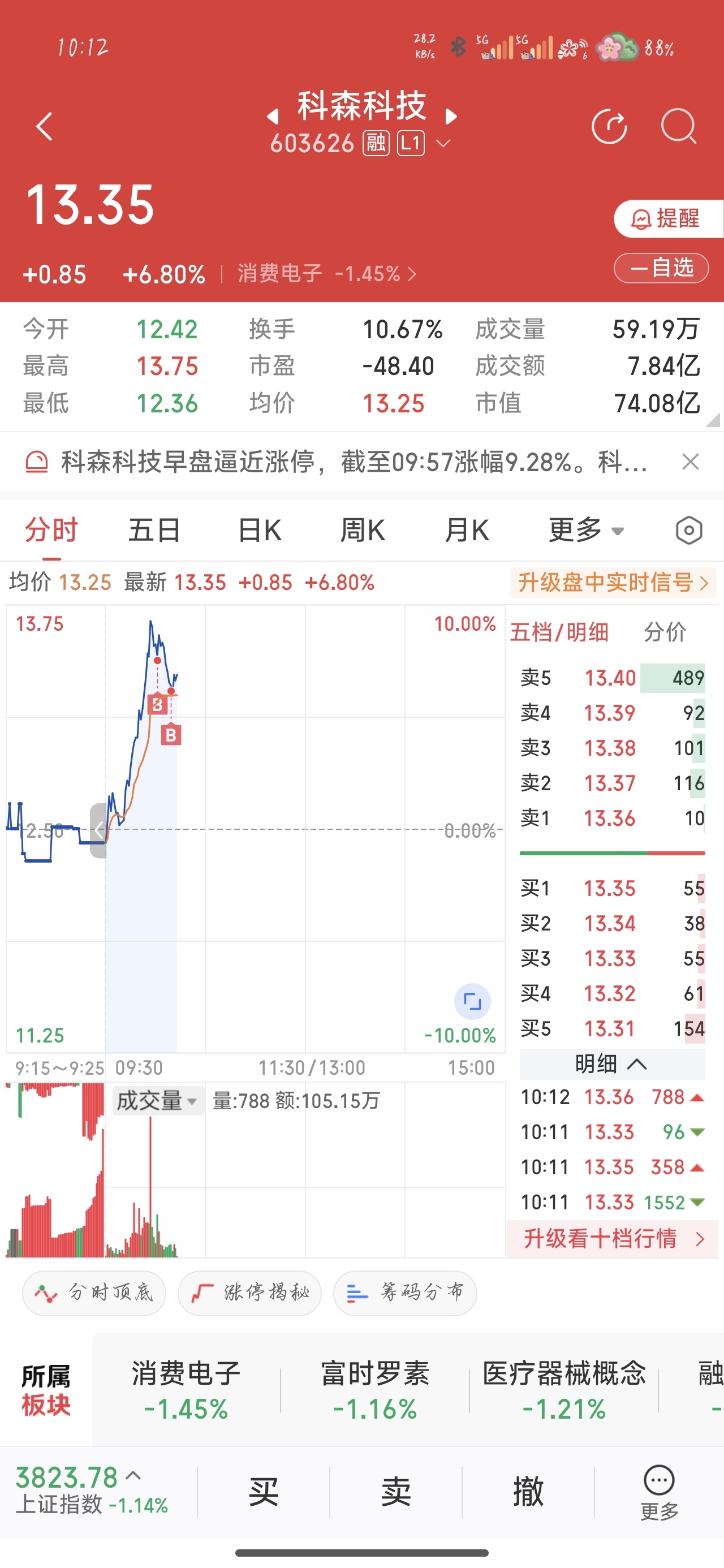 $科森科技(SH603626)$ 半仓试错,今天这大盘真的有点怕。