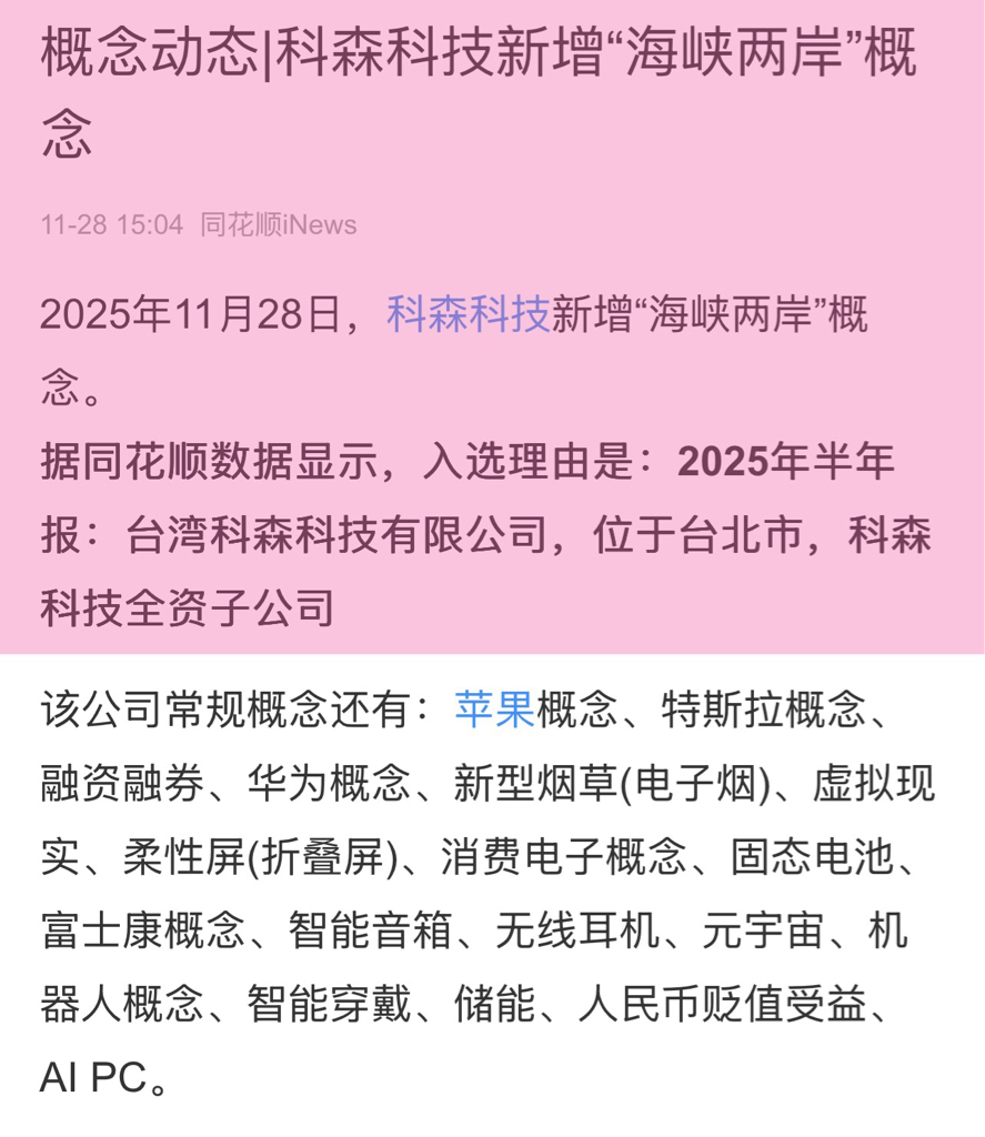 $科森科技(SH603626)$ 科森科技,直接受益“海峡两岸”概念!