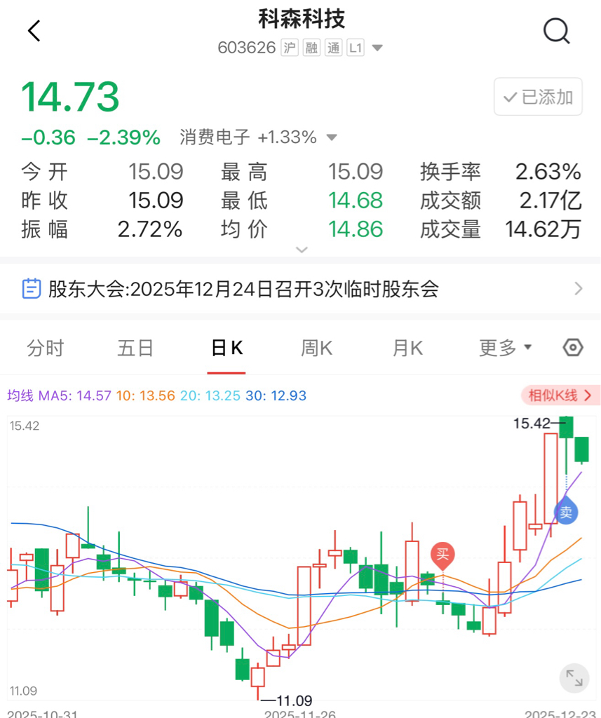 $科森科技(SH603626)$ 精准入场,精准逃顶,这个股做波段即可,10元左右进,15元出