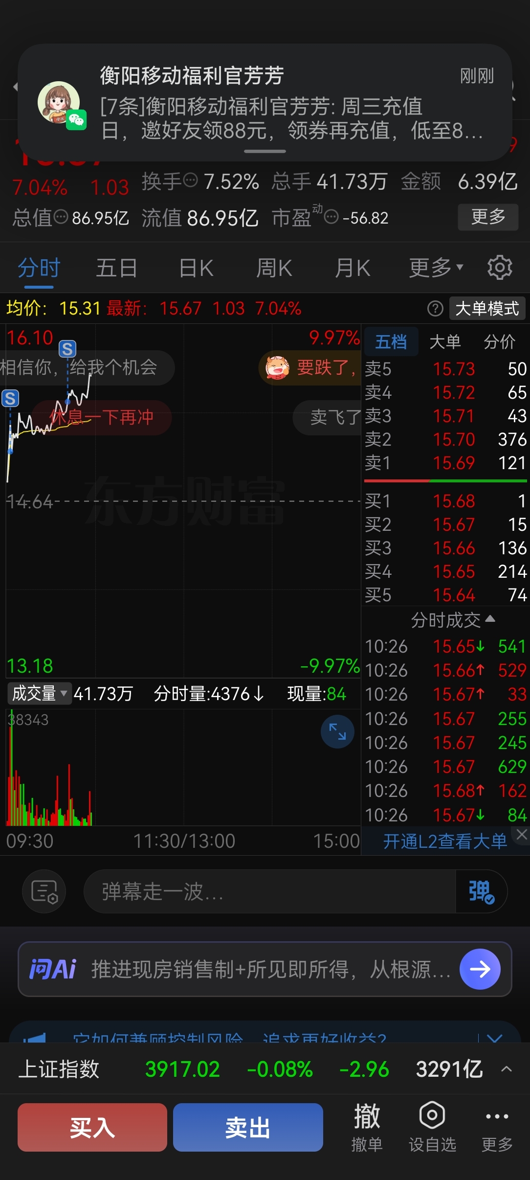 真的是,我一卖它就冲一下
