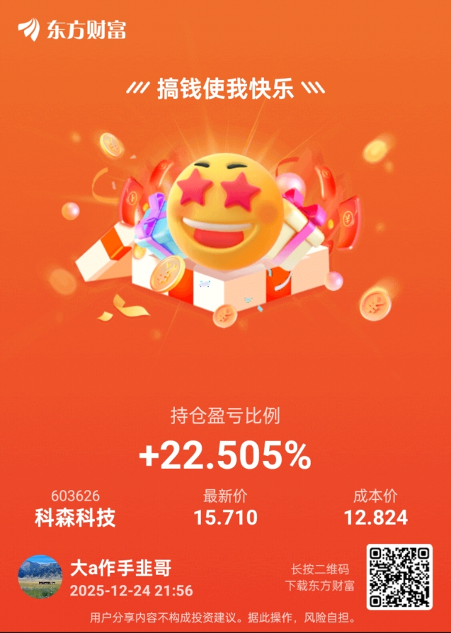 $科森科技(SH603626)$ 拿了一个星期,体验很好,就是买太少了,重仓的票没涨还跌了