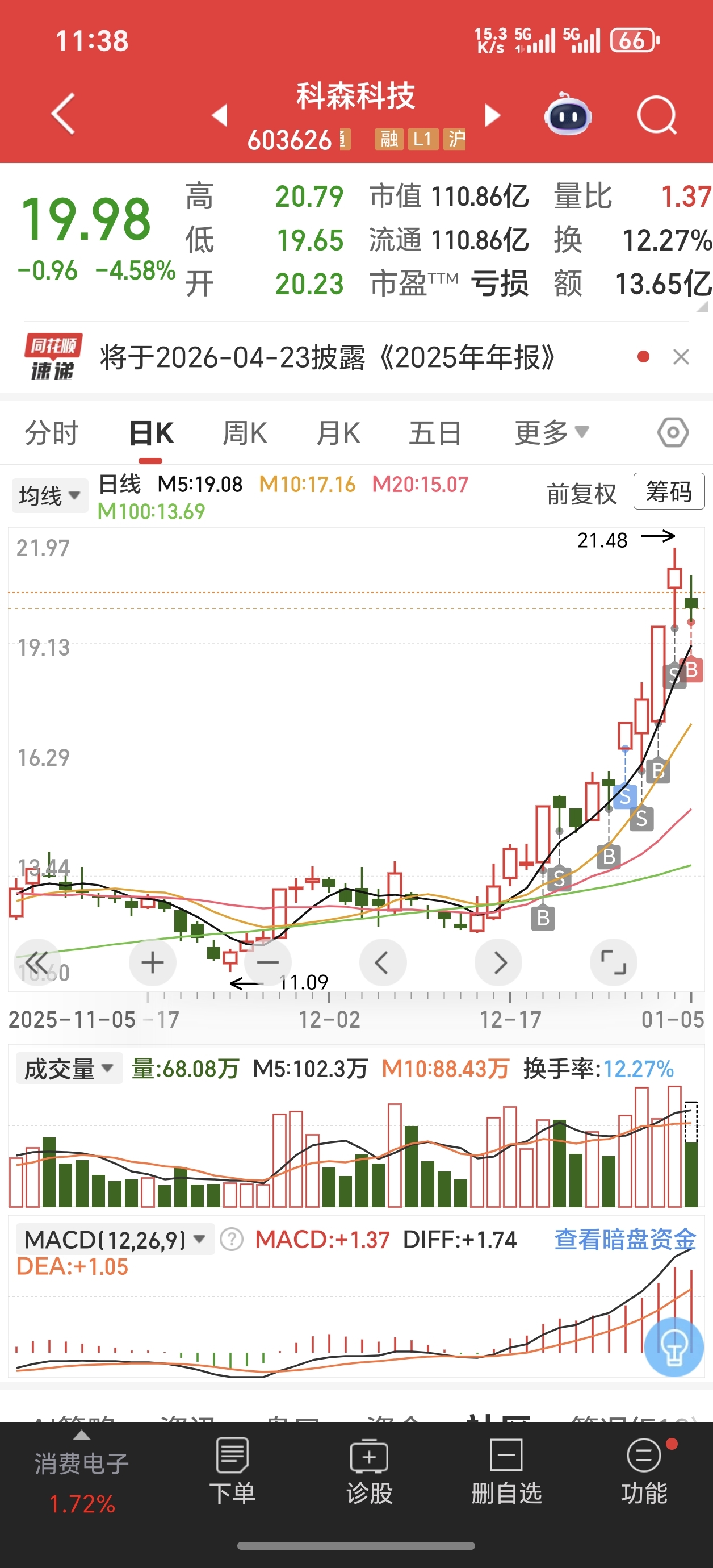 $科森科技(SH603626)$ 我又回来了,节前清仓是对的