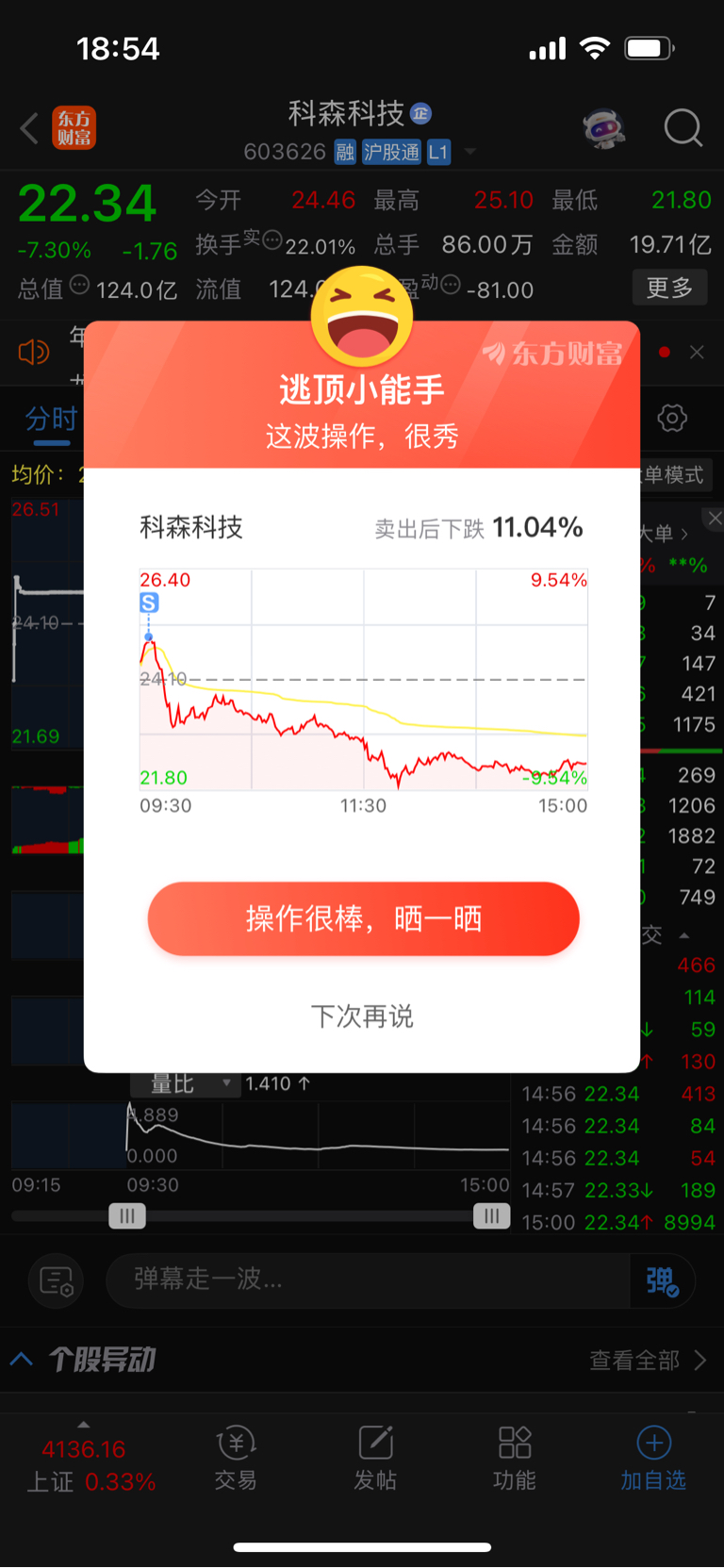 $科森科技(SH603626)$ 昨晚尾盘买入,今天早盘卖出,只能说操作到极致!