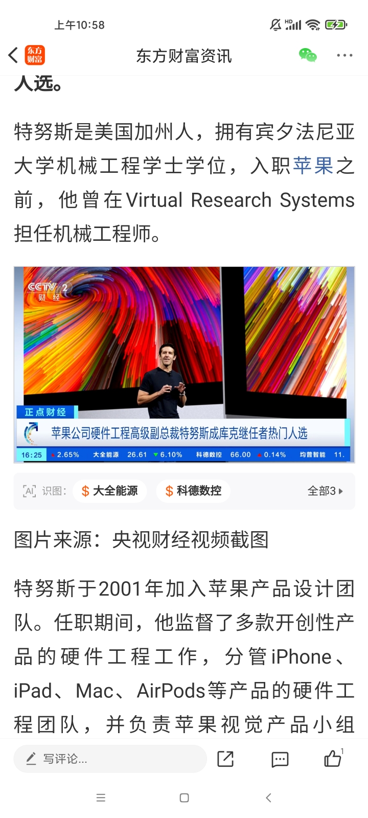今天大跌我怀疑苹果内部供应链的消息已经在竞争了,哈森还是科森?新的管理人是工程师