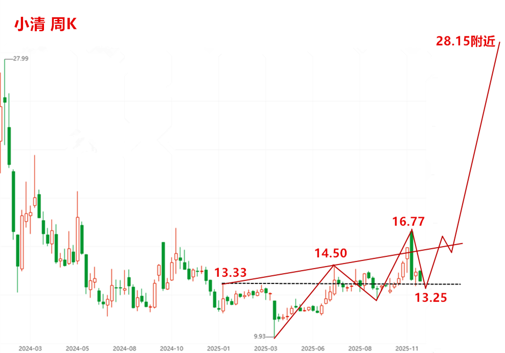 3、小清的主升,在突破上轨,又回踩取量之后,随时可能开启,大家要做的就是不丢底仓,保持耐心!