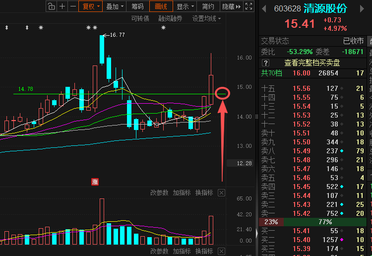推演:明日短线回踩锚定14.78左右!!