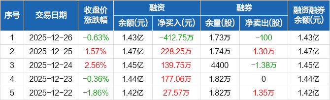 清源股份:融资净偿还412.75万元,融资余额1.43亿元(12-26)