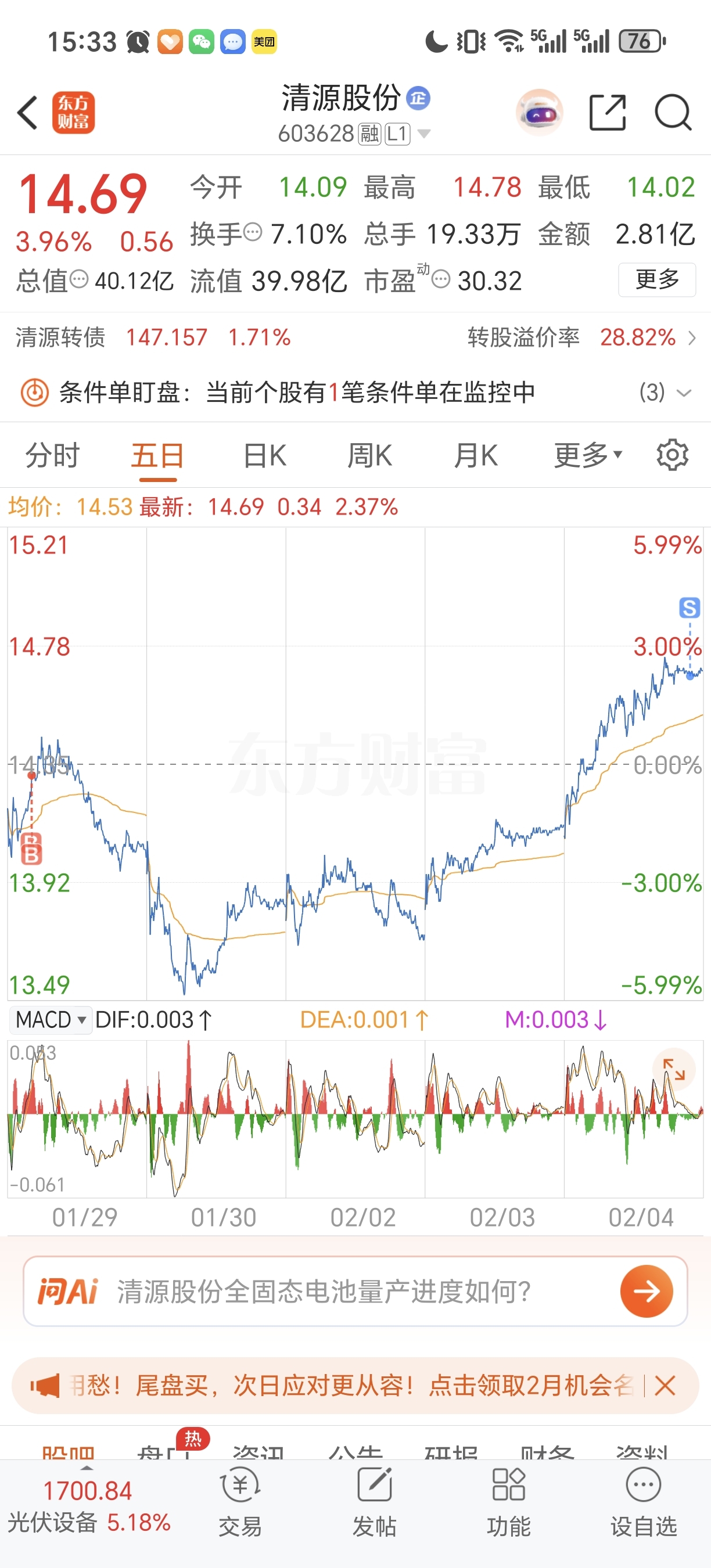 $清源股份(SH603628)$ 卖空了,只挣了一个盒饭钱