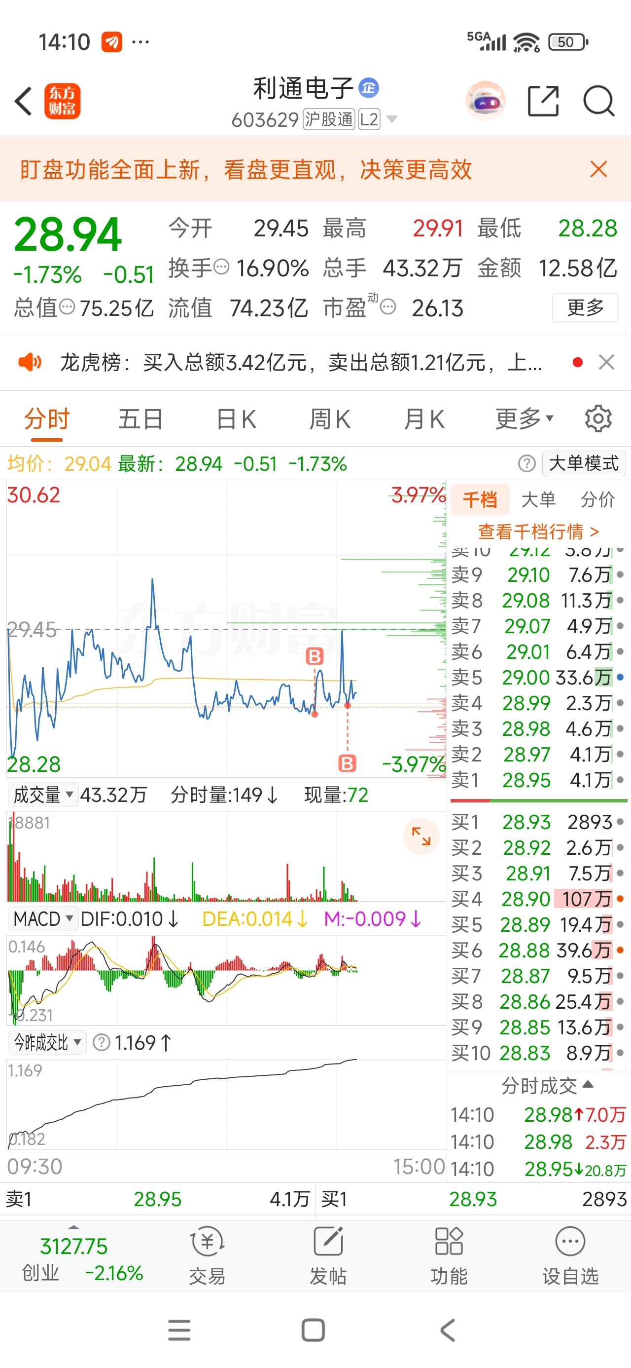 $利通电子(SH603629)$ 主力给个面子,明天涨停