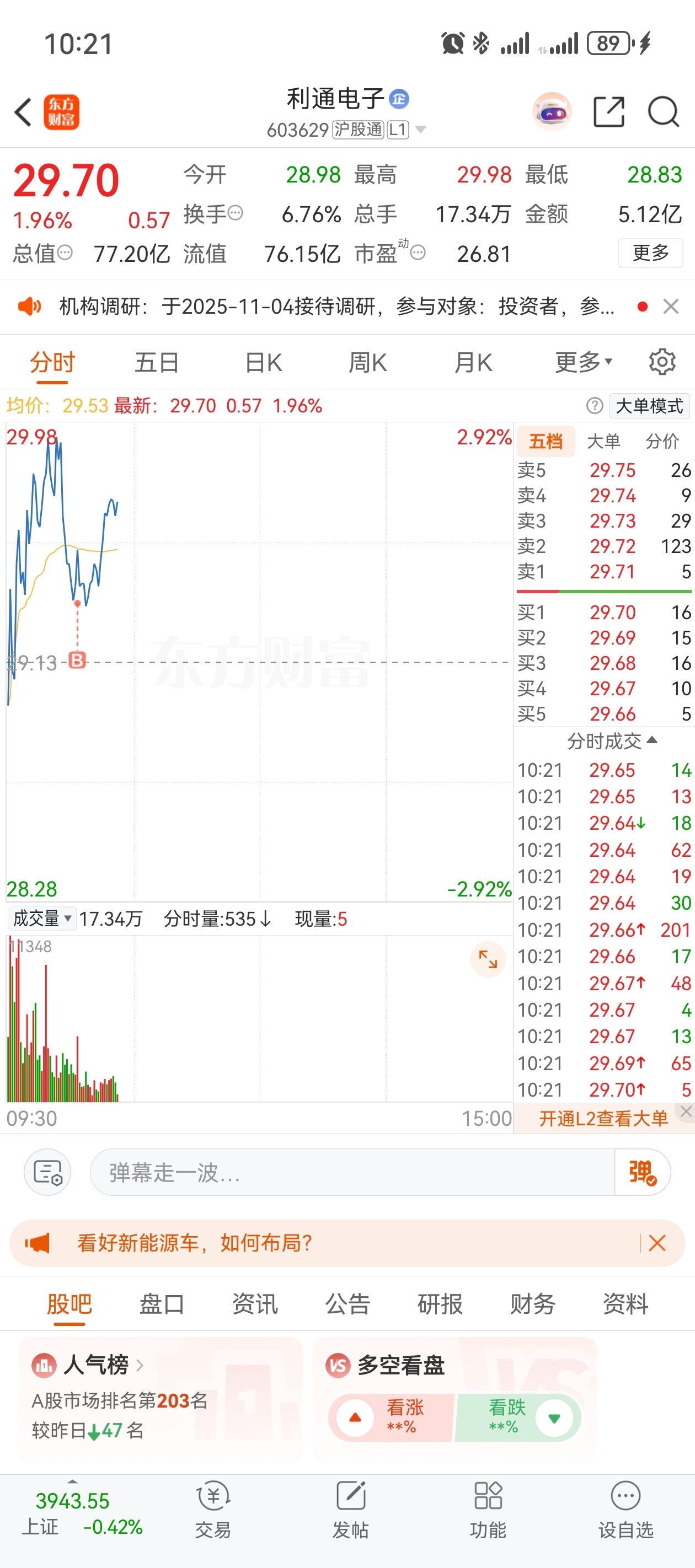 $利通电子(SH603629)$ 感谢主力还让我上车