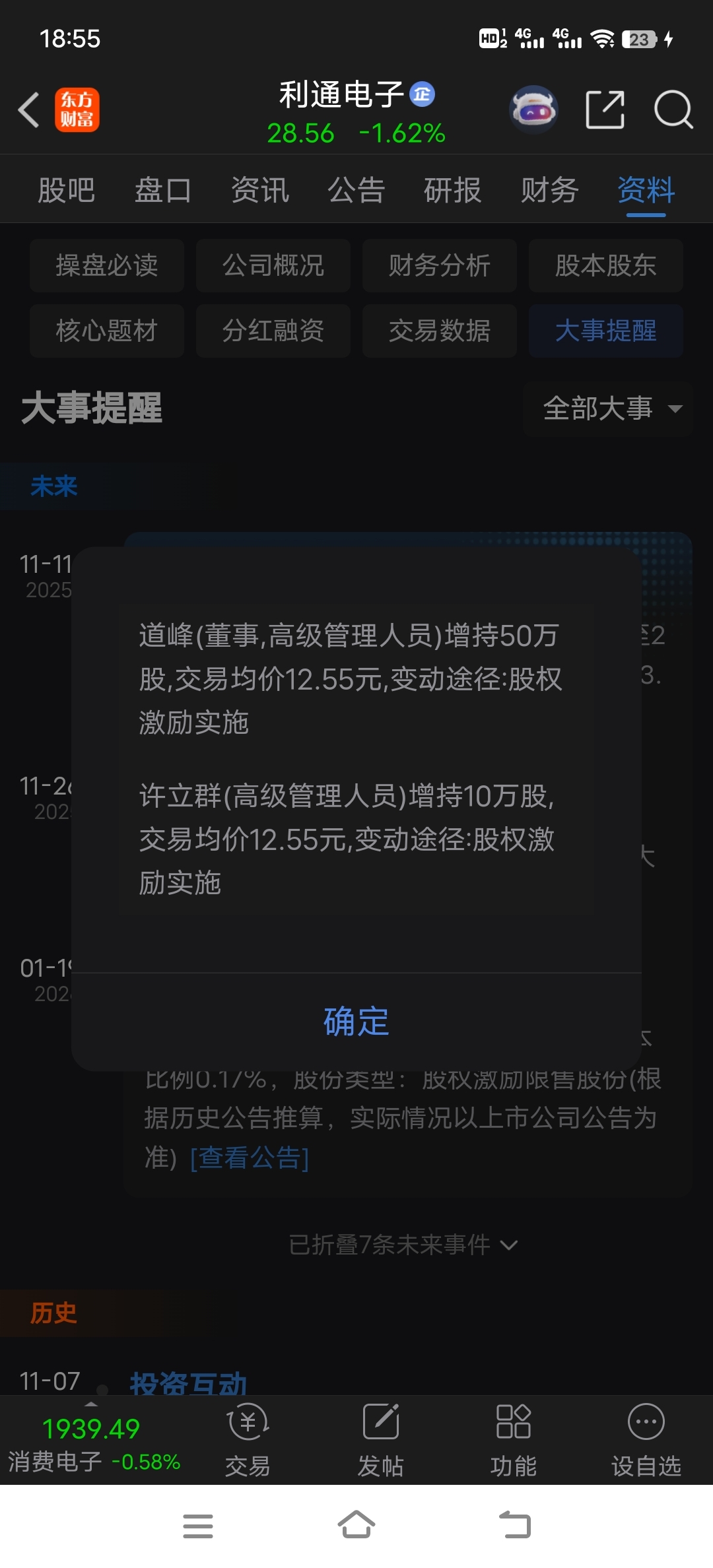 $利通电子(SH603629)$ 高管许立群11月6日刚刚通过股权激励增持了10万股,不足一个月就公告减持,是否违规?