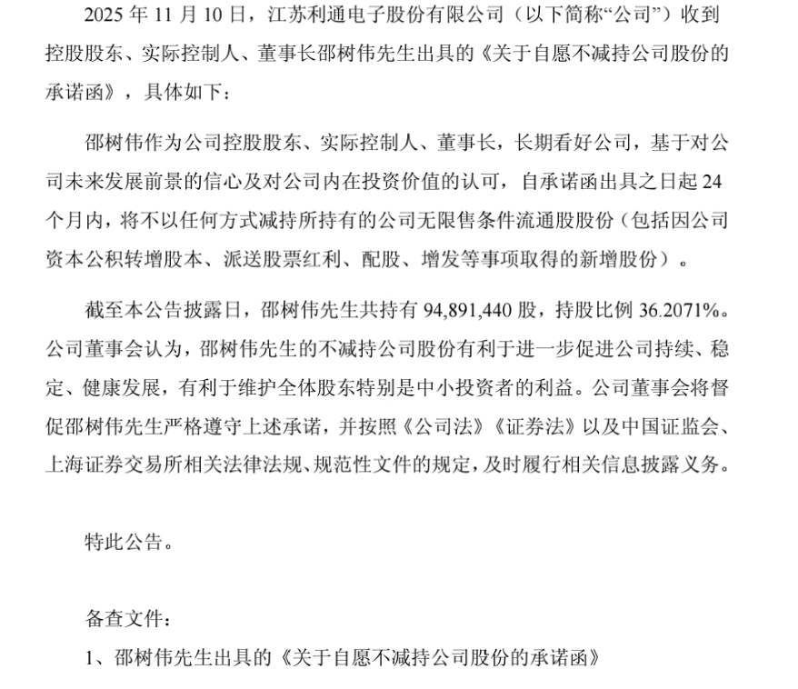 $利通电子(SH603629)$ 公司董事长大股东都承诺未来2年不减持自家公司股东。你们一群小散怕这怕那的,大股东几十亿资金都锁仓2年。