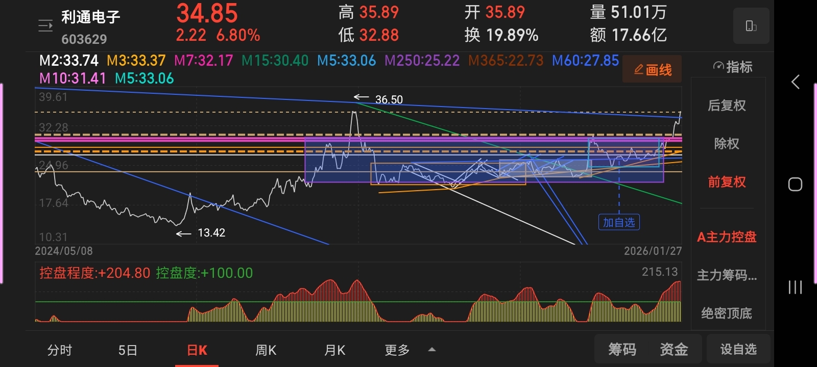 $利通电子(SH603629)$ 突破是突破了,被追着打回到区间重新拉上去了,我的意思今天突破没站稳,不知道是不是因为出货被爆头还是因为什么了