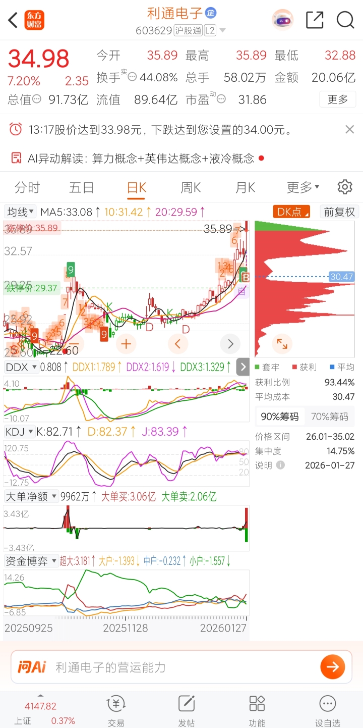 $利通电子(SH603629)$ 这根天线让我犹豫了好久,不管了,基本面是实打实的,34.95入了
