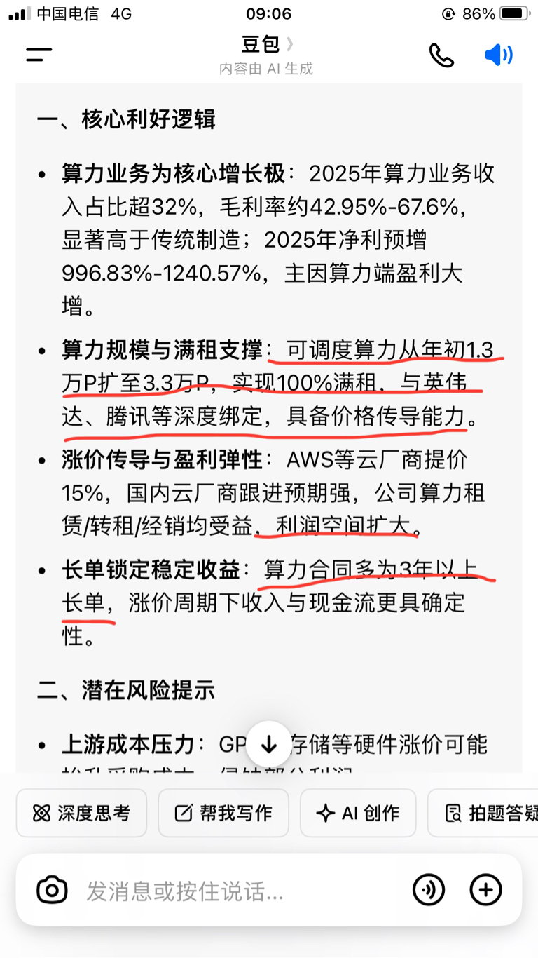 那昨天分析错了,昨天以为是主力出逃,现在看来是有大消息出来,算力涨价,主力诱导获