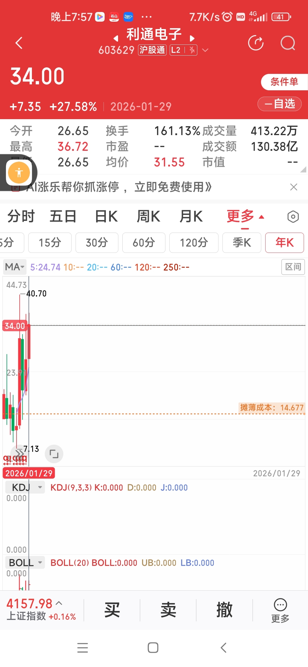 $利通电子(SH603629)$