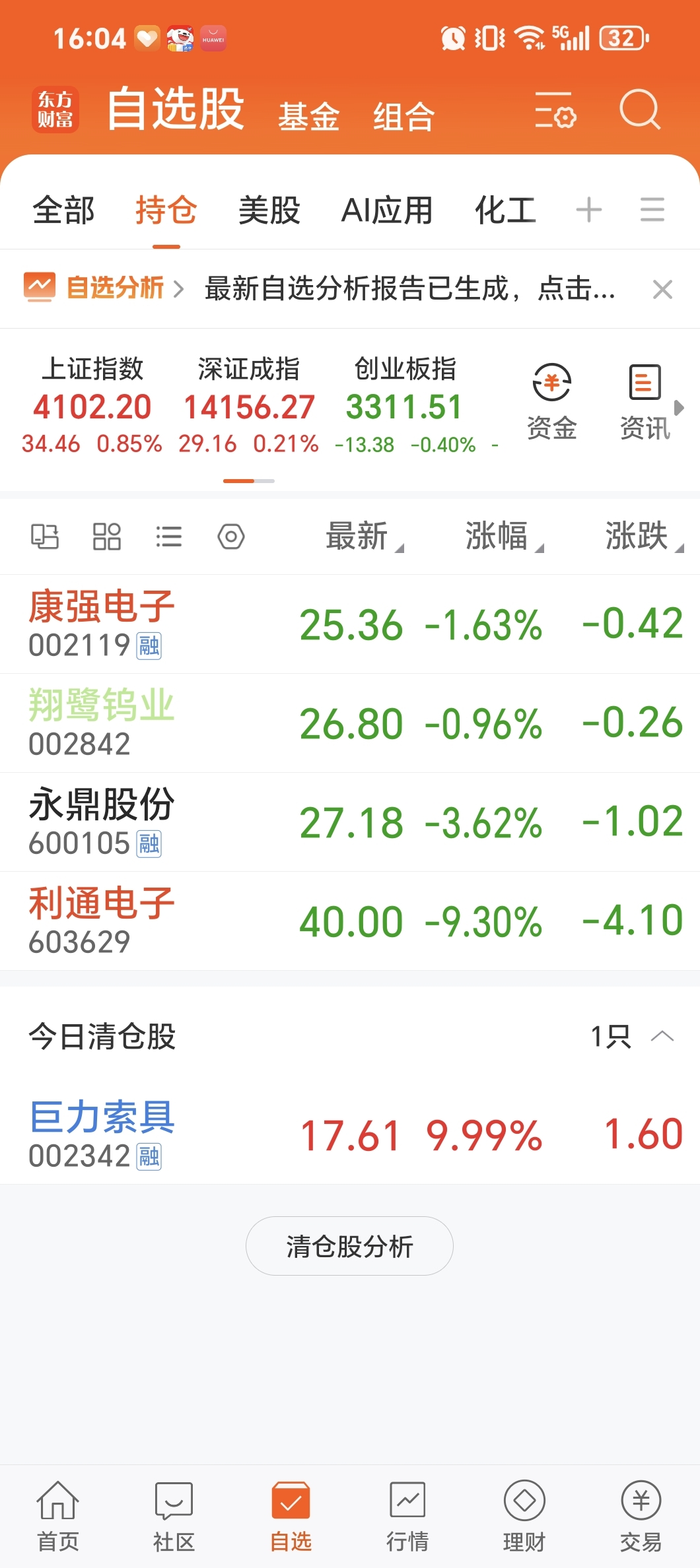 $利通电子(SH603629)$ 今天清仓一个,低吸4个