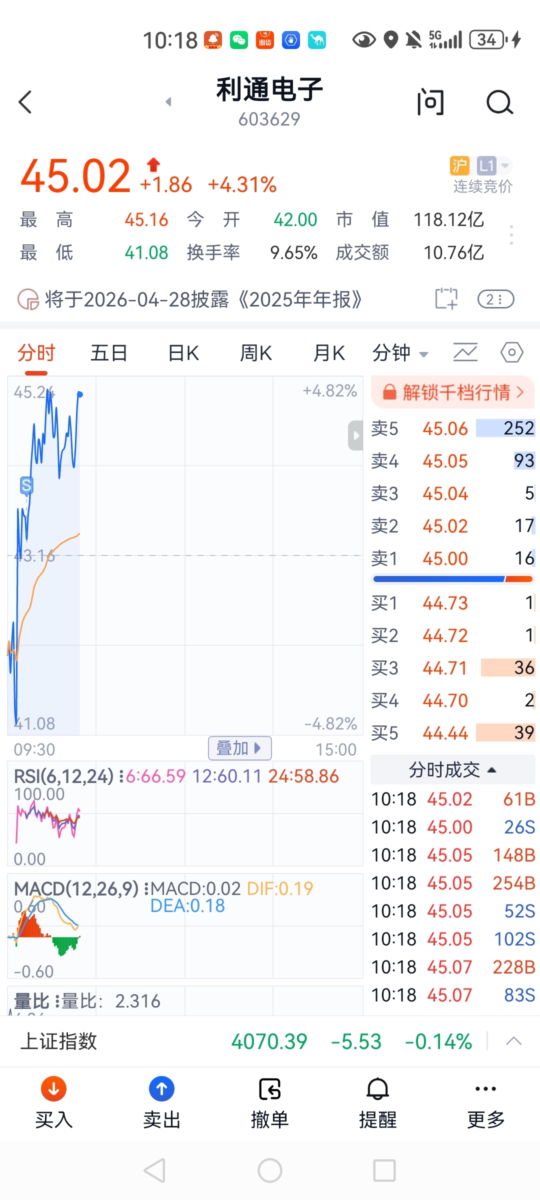 $利通电子(SH603629)$ 咋想的,43.6就卖了