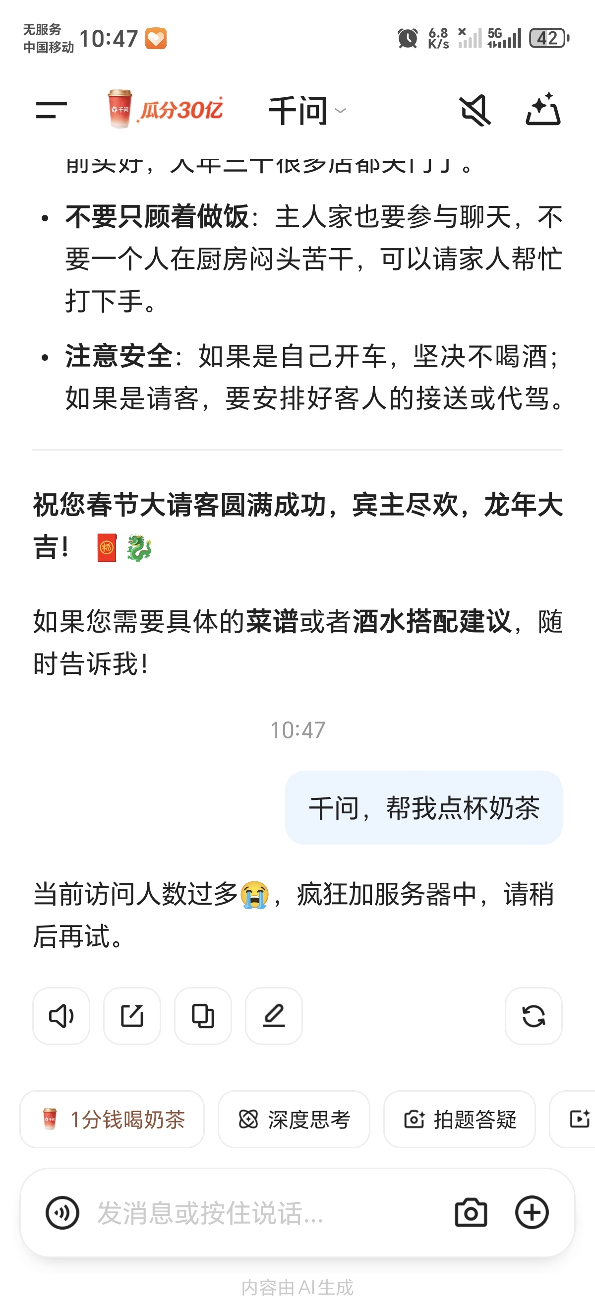 $利通电子(SH603629)$ 千问免费喝奶茶,服务器崩了